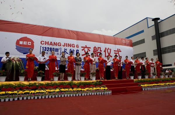 翁孟勇副部长等9位领导和嘉宾为长鲸6交船仪式剪彩