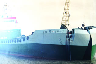 为上海航道局制造的“航驳2003”2000立方自航开体泥驳